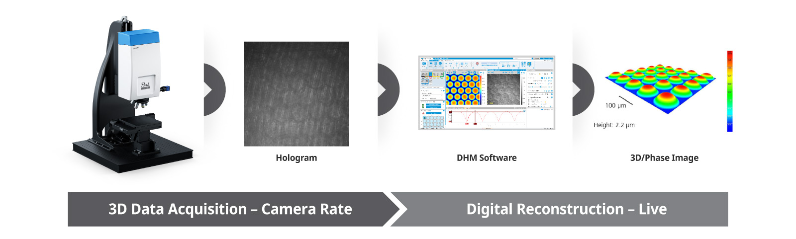 DHM are used in research labs and production facilities for semiconductor, MEMS, medtech, watch industry, industrial metrology, polymer, micro-nano technology, micro-optics, and photonics applications.