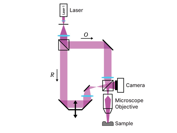 DHM is the digital extension of classical holography. It is a patented technology that records holograms with a digital camera rather than on a photographic plate. A numerical processing replaces the classical re-illumination process to retrieve, in real time, the phase and intensity changes induced by the imaged sample. This information is then interpreted to retrieve the sample topography.