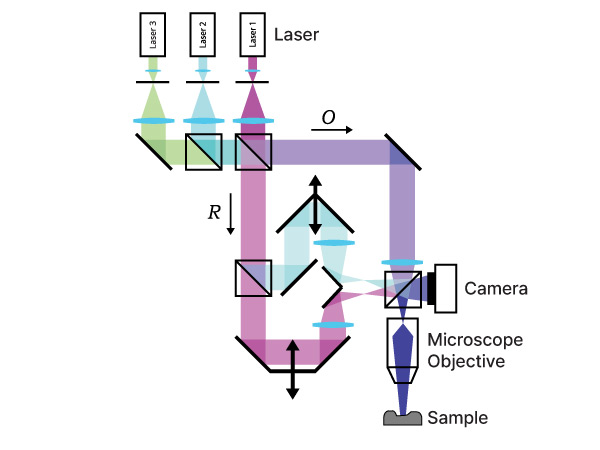 3D data acquisition is performed in a single image capture and is repeated at the camera frequency. All the pixels in the field of view are acquired simultaneously, without any lateral, vertical, or phase mechanical scanning enabling full-field fast-acquisition of dynamics samples.