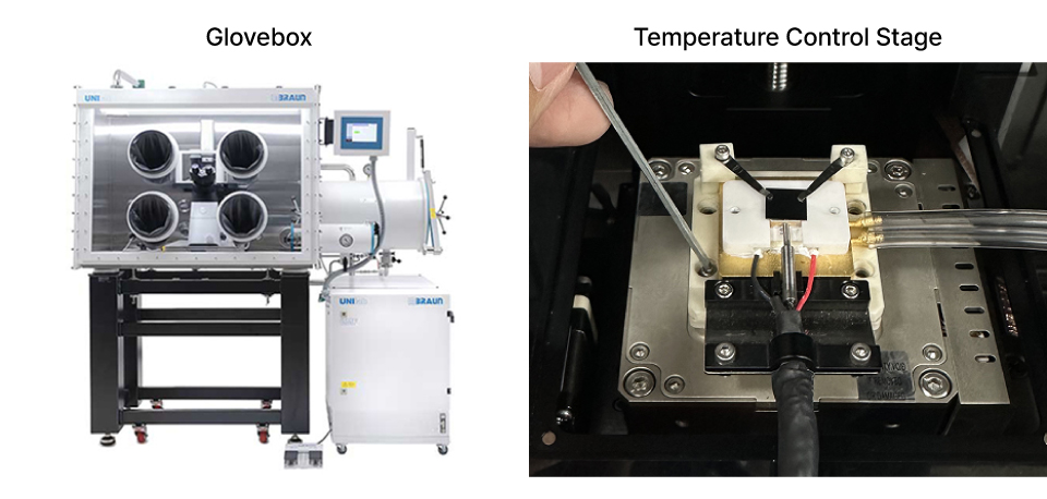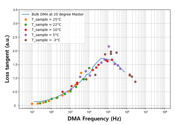 A unique strength of Park’s nano DMA is the ability to construct a "master curve." By applying the principle of time–temperature superposition, data collected over a range of temperatures can be shifted along the frequency axis to create a unified curve. This enables prediction of long-term viscoelastic responses and material performance under conditions outside the directly measured window, such as very high frequencies (fast stress) or very low temperatures (slow, aging processes). Particularly Park's nano DMA is compatible with advanced temperature control stages, permitting precise modulation of sample temperature—including sub-zero conditions. Coupling this capability with controlled glovebox environments, which actively regulate oxygen and humidity to eliminate condensation, enables reliable viscoelastic characterization across a wide range of environmental extremes. This integrated approach uniquely positions nano DMA as an ideal platform for probing nanoscale mechanical properties in polymers, elastomers, and other sensitive materials under conditions unattainable with conventional bulk DMA systems.