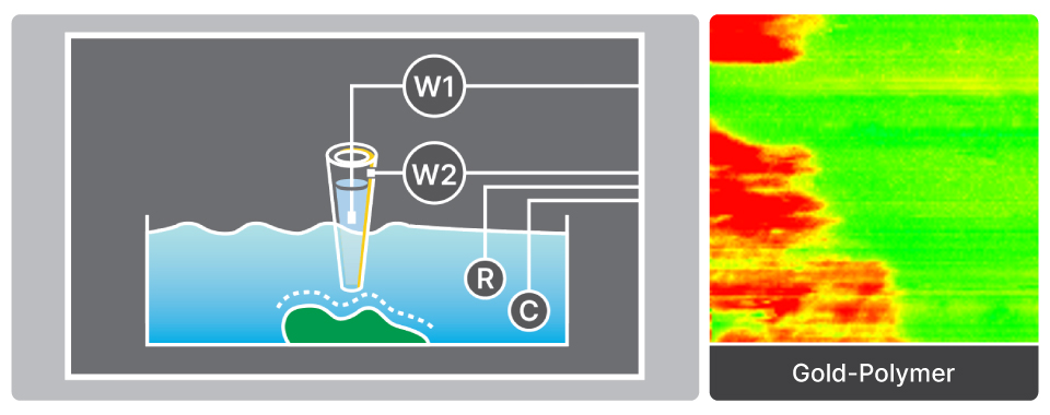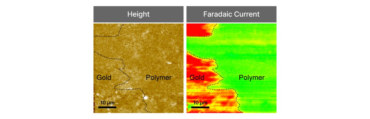 Combines SICM with SECM for simultaneous surface topography and electrochemical activity imaging
